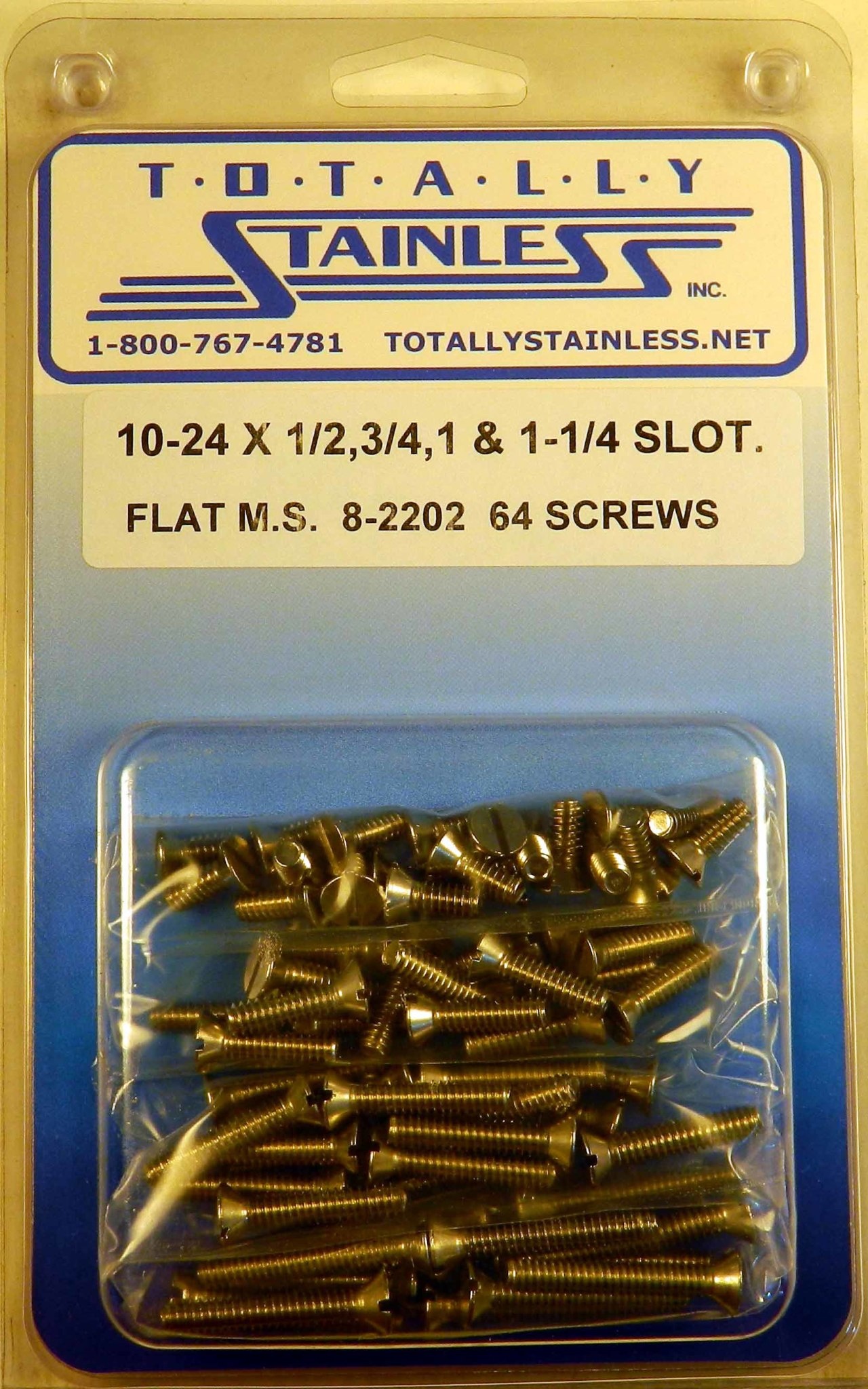 Genuine Totally Stainless #10-24 x 1/2", 3/4", 1", & 1-1/4" Stainless Slotted Flat Head Machine Screws - 8-2202 - 18-8 Stainless Steel - 64 Screws
