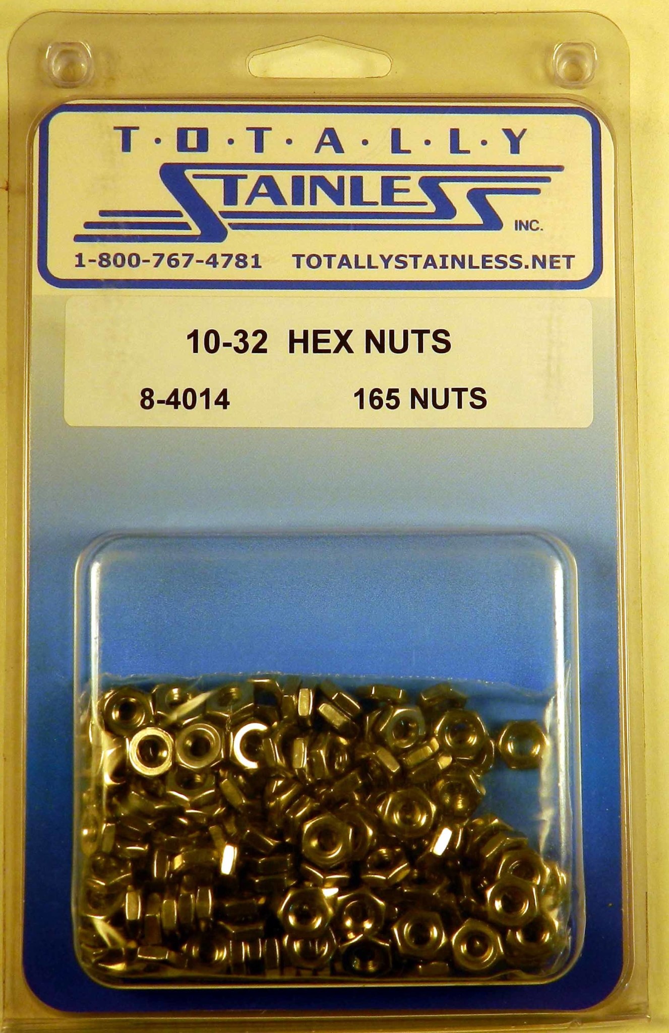 Genuine Totally Stainless 10-32 Stainless Hex Nuts - 8-4014 - 18-8 Stainless Steel - 165 Nuts