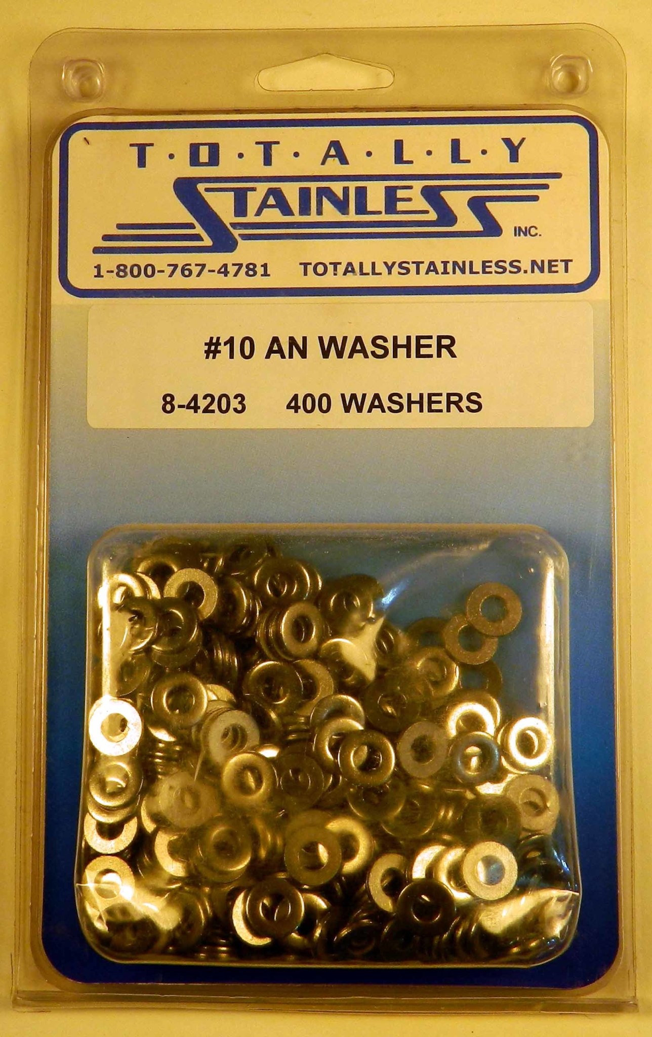 Genuine Totally Stainless #10 AN Stainless Flat Washers - 8-4203 - 18-8 Stainless Steel - 400 Washers