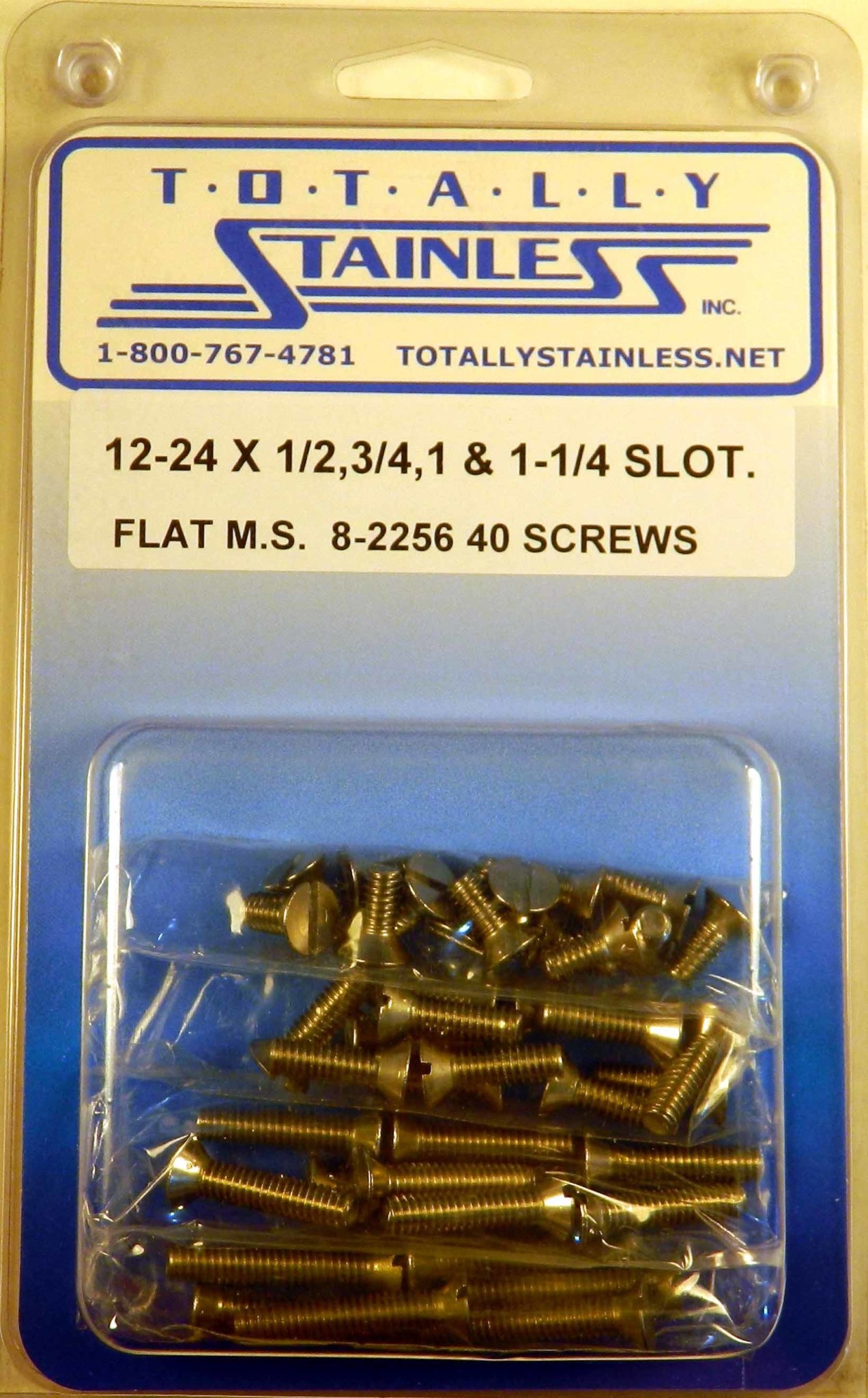 Genuine Totally Stainless #12-24 x 1/2", 3/4", 1", & 1-1/4" Stainless Slotted Flat Head Machine Screws - 8-2256 - 18-8 Stainless Steel - 40 Screws