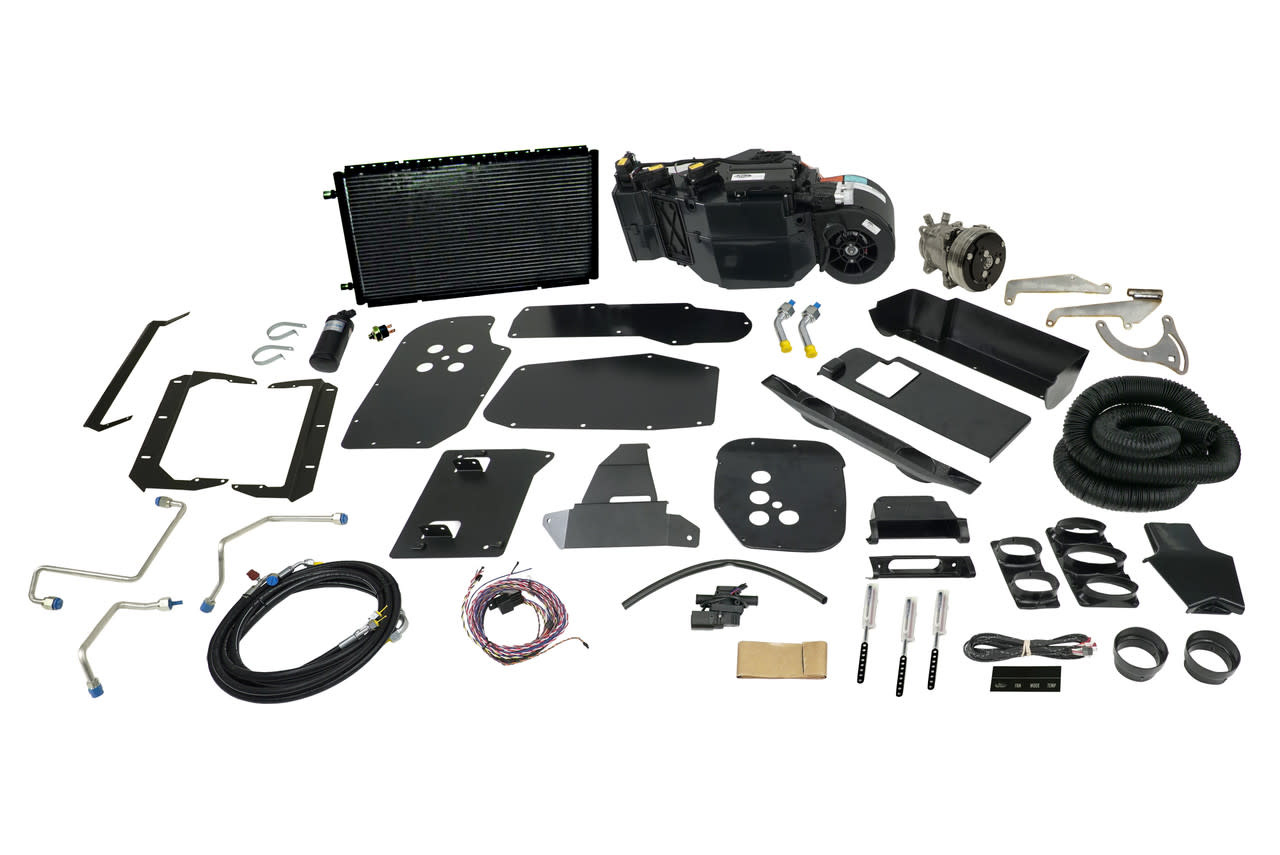 **This complete kit includes everything from the evaporator kit, plus all under-hood components such as the compressor and bracket, condenser with brackets, preformed refrigerant lines, drier, fittings, hardware, and detailed installation instructions.