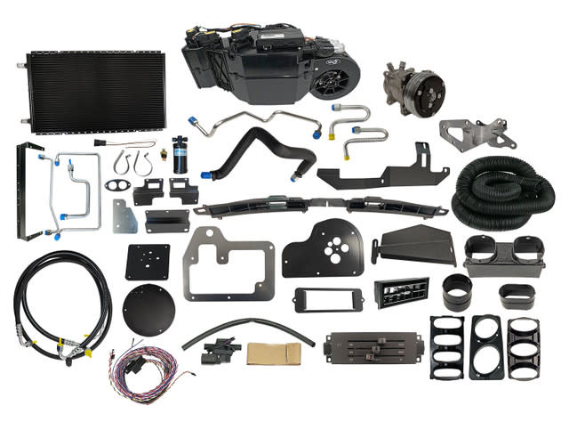 Complete kits include everything in the evaporator kit plus all under-hood components such as compressor, engine brackets, condenser with brackets, preformed refrigerant lines, drier, fittings, hardware and installation instructions.