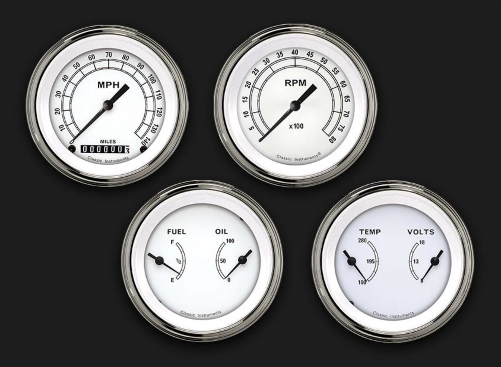 Read more...Classic Instruments 4 Gauge Set - 3 3/8" Speedo & Tach with 2 Duals - Classic White Series - CW05SLC