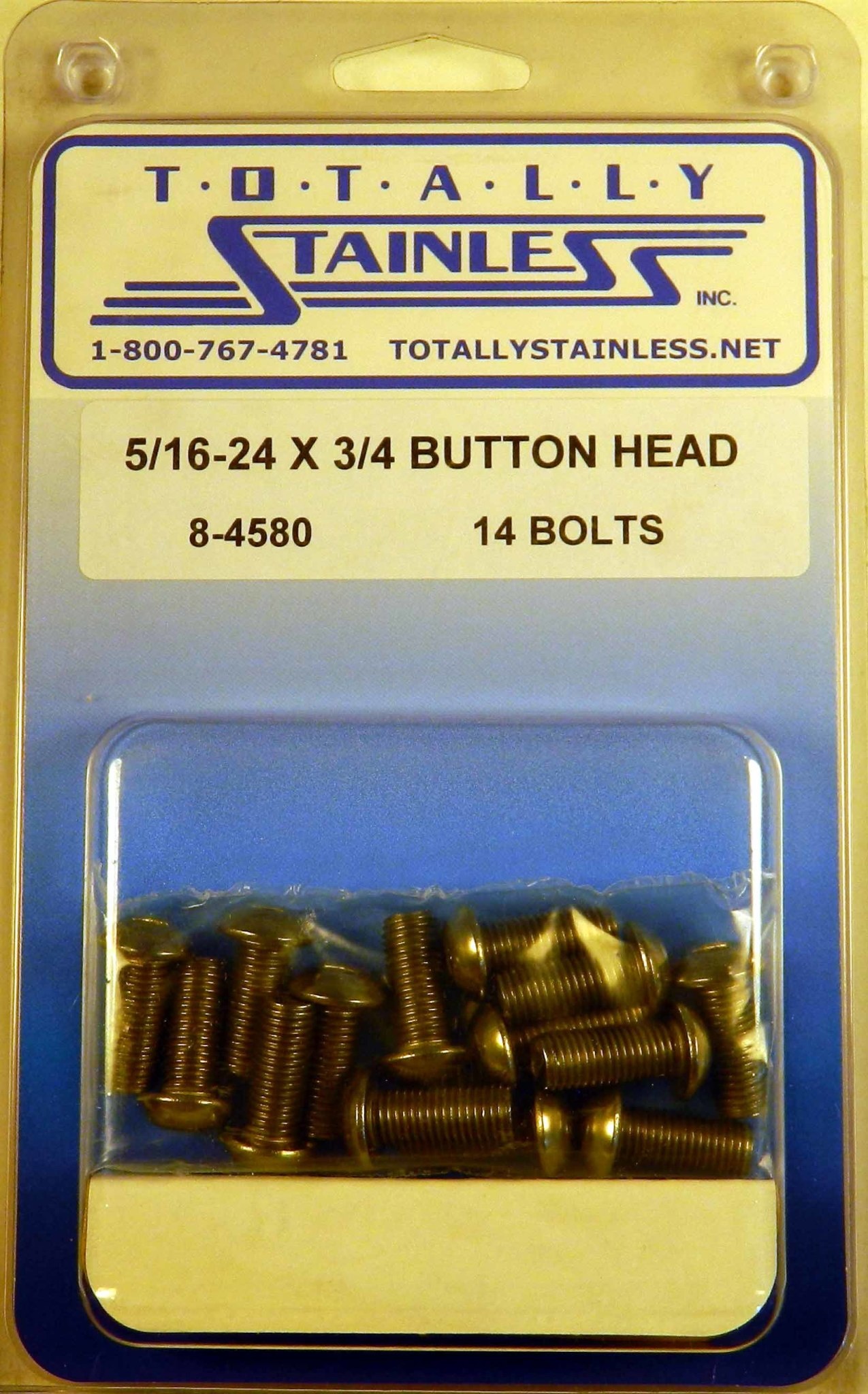 Genuine Totally Stainless 5/16-24 x 3/4" Stainless Button Head Bolts - 8-4580 - 18-8 Stainless Steel - 14 Bolts