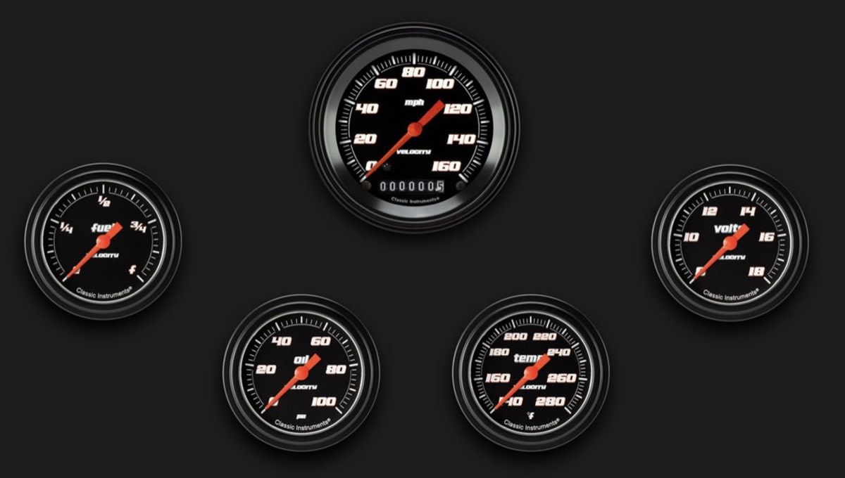 5 Gauge Set - 3 3/8" Speedo, 2 5/8” Full Sweep FOTV - Velocity Black Series