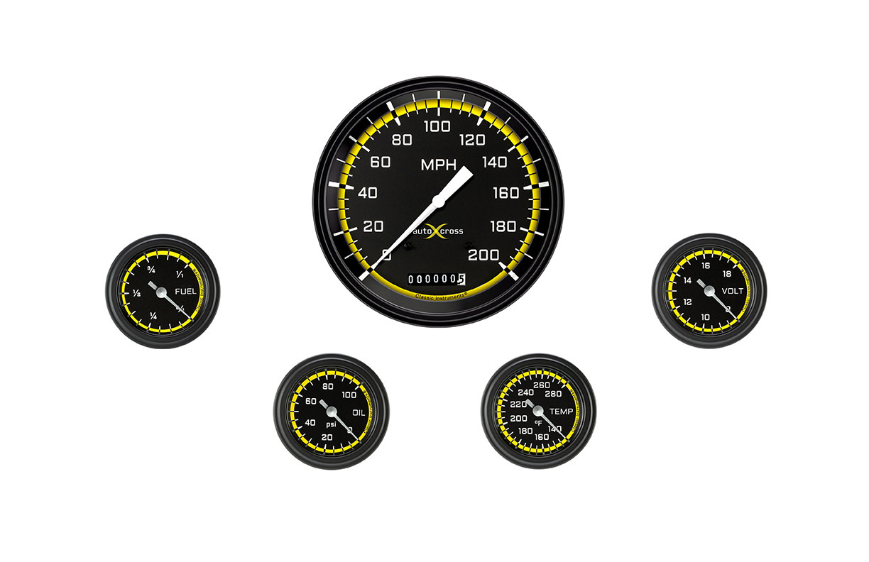 5 Gauge Set - 4 5/8” Speedo, 2 1/8” Full Sweep FOTV - AutoCross Yellow Series