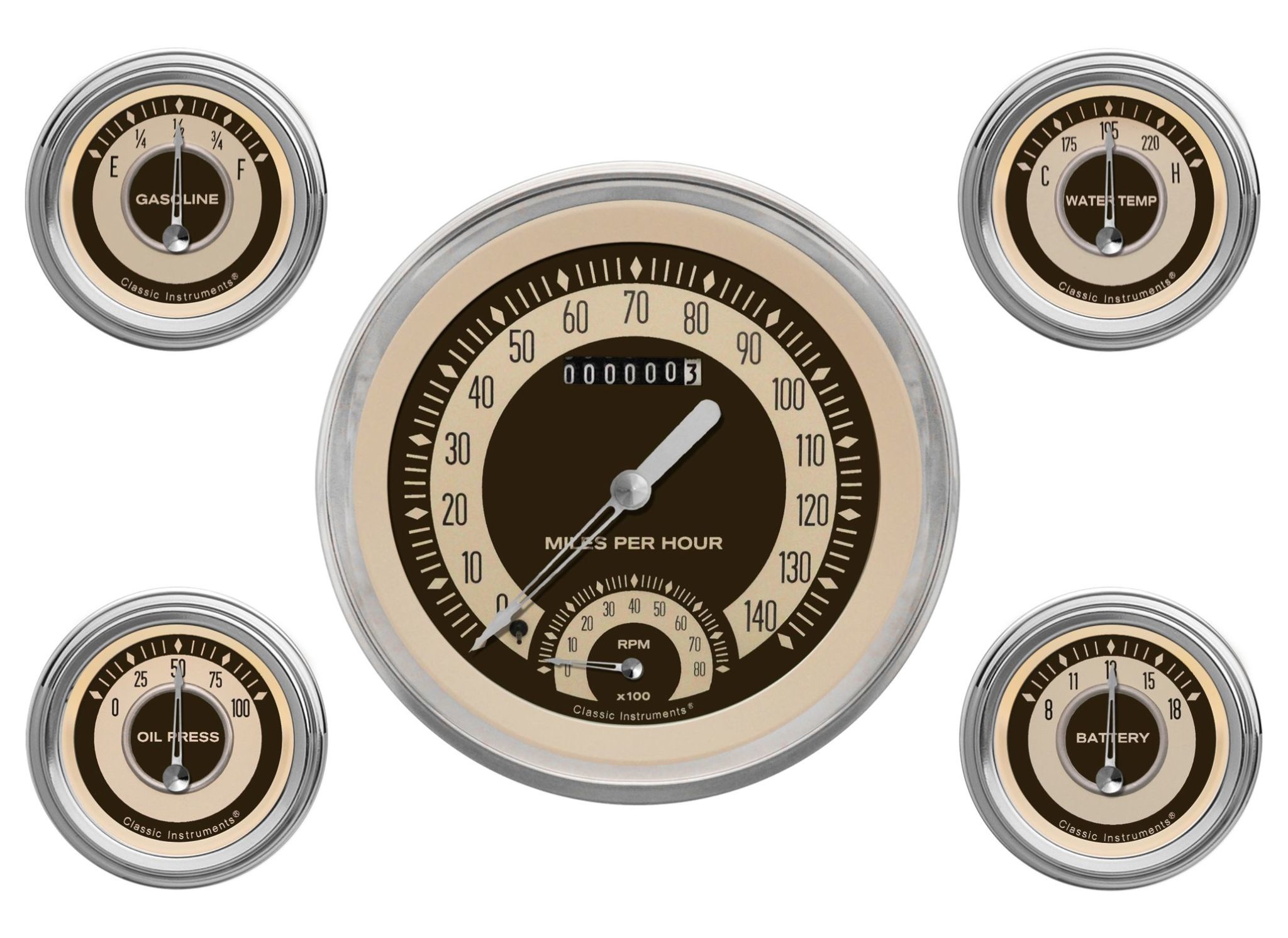 5 Gauge Set - 4 5/8” Speedtachular, 2 1/8" Short Sweep FOTV - Nostalgia Series - NT65SLC