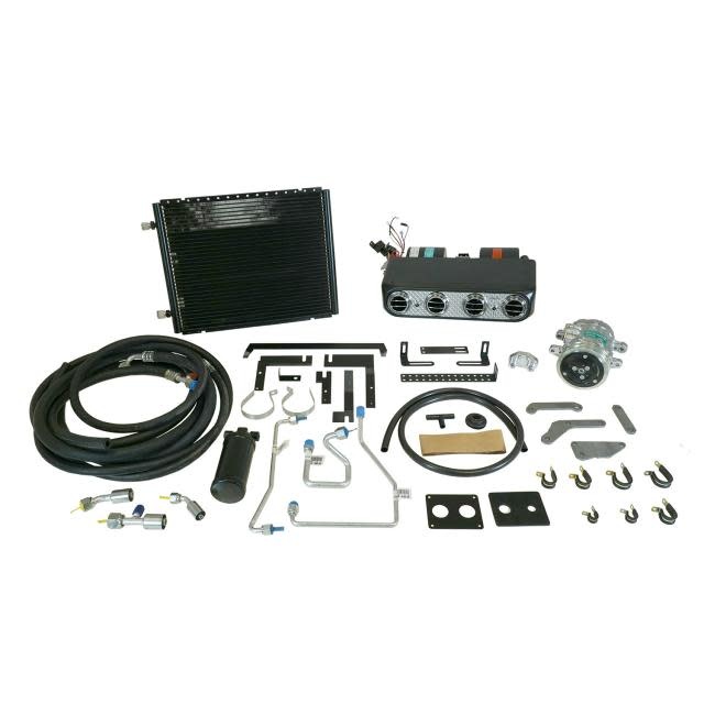 The kit includes the Heritage evaporator, SD7B10 compressor, engine bracket to work with the original generator or to use a Ford alternator, hose kit and direct bolt-in condenser kit with drier.