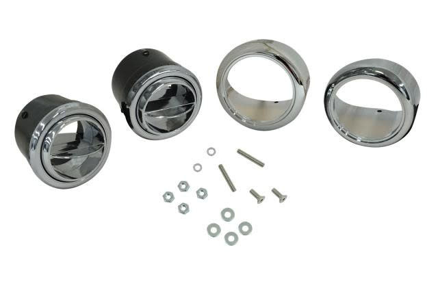 1955-59 Chevrolet pickup chrome louver kit. A pair of billet louver bezels contoured for 1955-59 Chevy truck dash. Kit also includes a pair of chrome ball louvers and installation hardware.