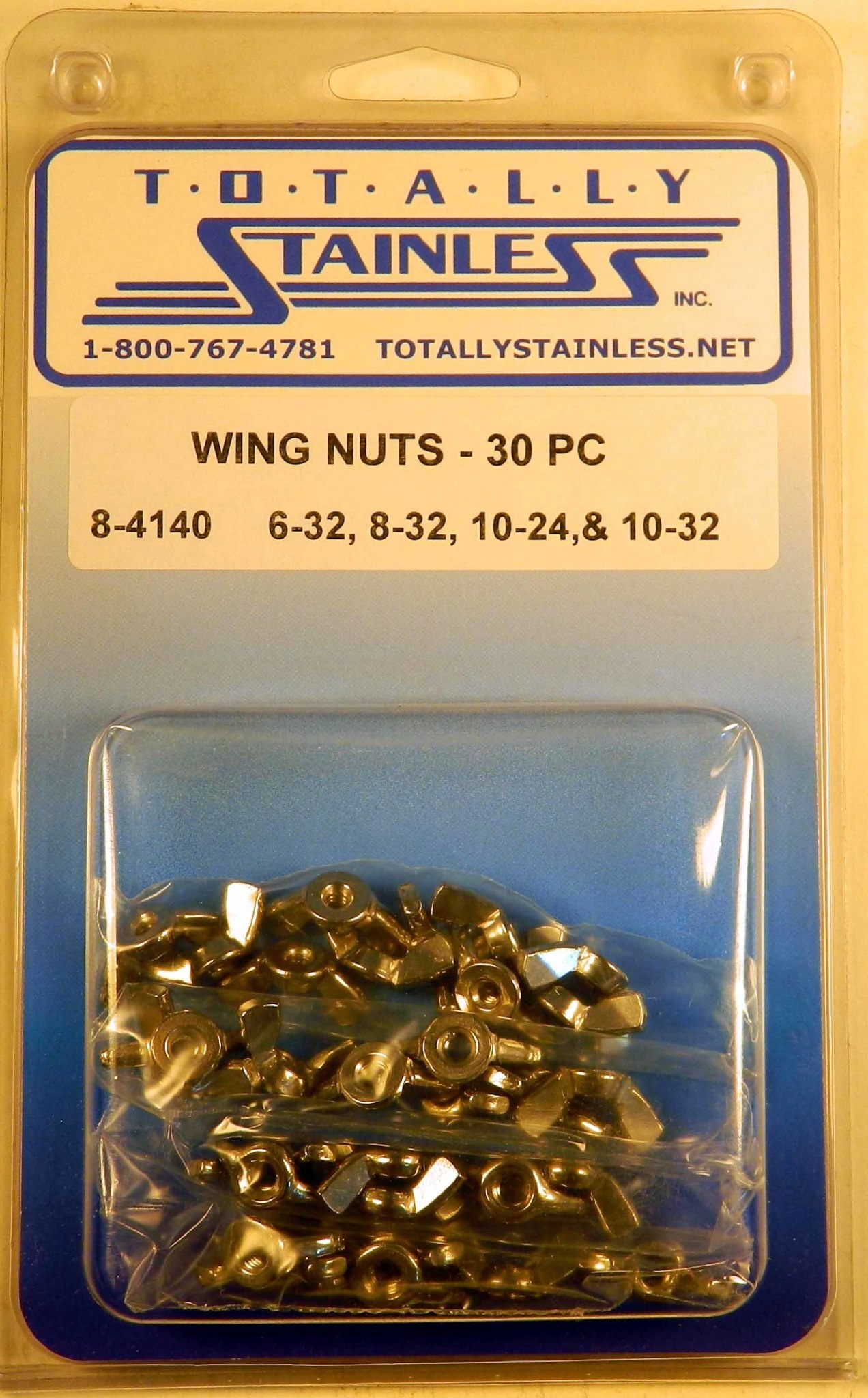Genuine Totally Stainless 6-32, 8-32, 10-24 & 10-32 Stainless Wing Nuts - 8-4140 - 18-8 Stainless Steel - 30 Nuts