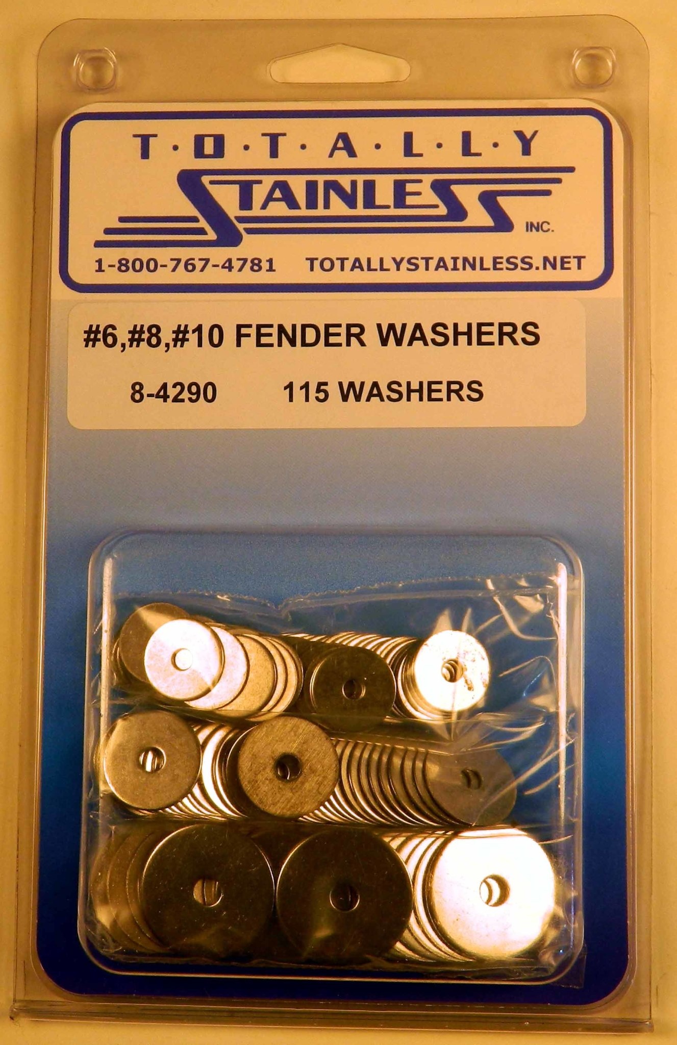 Genuine Totally Stainless #6, 8 & 10 Stainless Fender Washers - 8-4290 - 18-8 Stainless Steel - 115 Washers