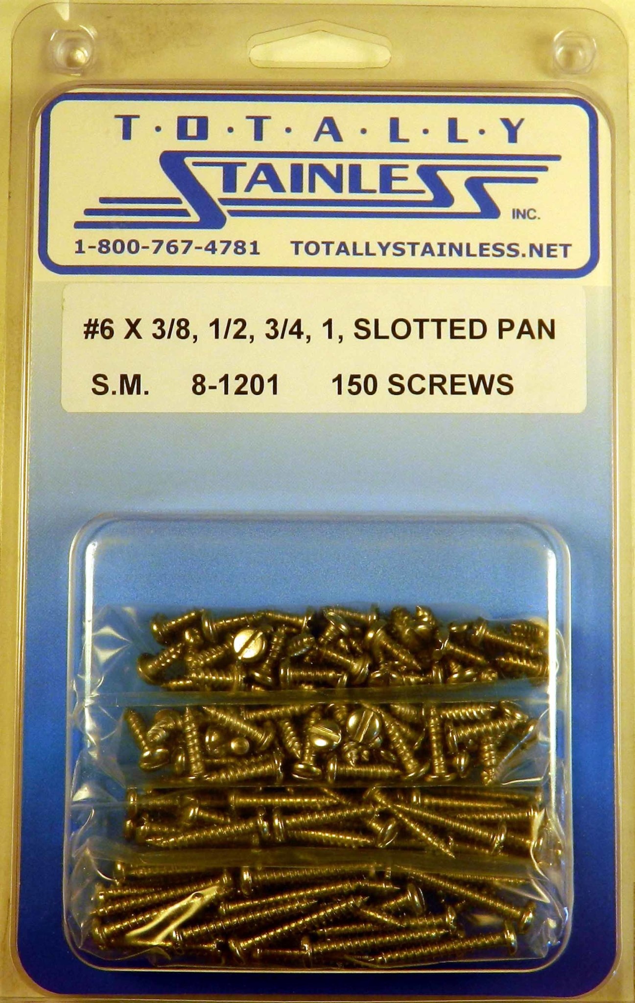 Genuine Totally Stainless #6 x 3/8", 1/2", 3/4", & 1" Stainless Slotted Pan Head Sheet Metal Screws - 8-1201 - 18-8 Stainless Steel - 150 Screws