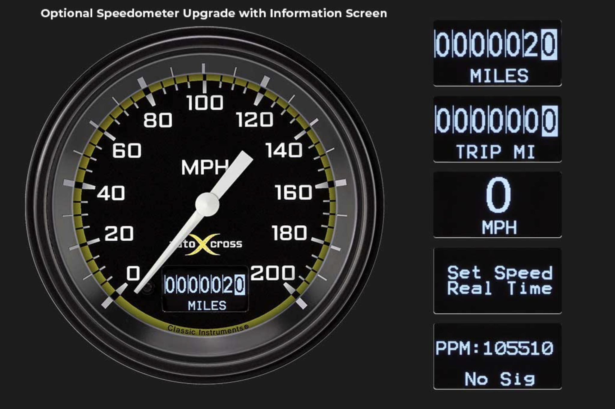 64-65 Chevelle Instruments - AutoCross Yellow - Std. Speedometer with Info Screen - CV64AXY-ODO-UP