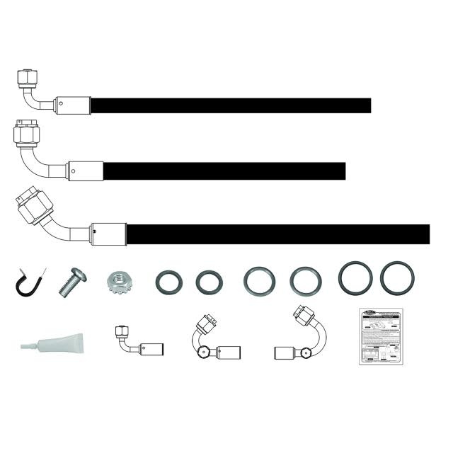 This modified reduced barrier hose kit is designed for use with a complete Gen IV or Gen 5 SureFit™ system in vehicles without a stock engine compartment configuration and core support. The kit contains refrigerant hoses with pre-crimped reduced barrier beadlock fittings on (1) end with the other end open to accommodate a custom installation. All necessary fittings, O-rings and mounting hardware are also included, along with detailed installation and crimping instructions.