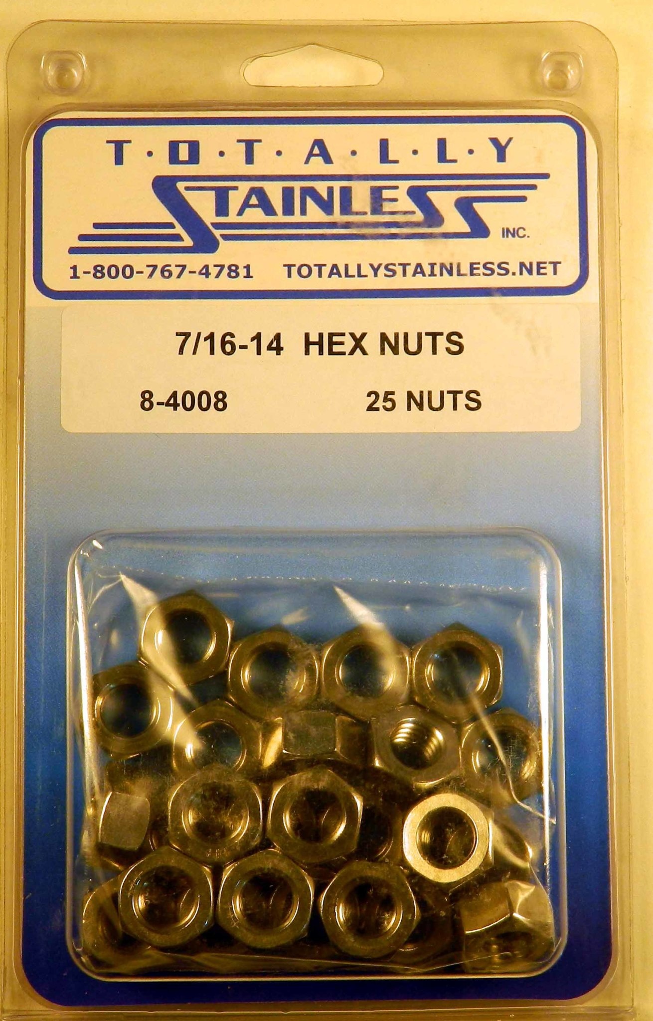 Genuine Totally Stainless 7/16-14 Stainless Hex Nuts - 8-4008 - 18-8 Stainless Steel - 25 Nuts