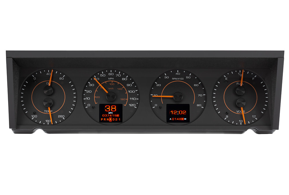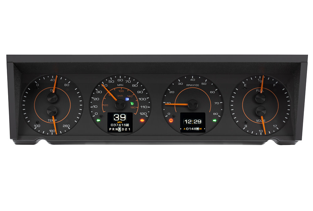 The Box Chevy is a great candidate for an understated stock theme! Direct bolt-in, color-changing backlighting, full-color digital screens and mobile-app compatibility are standard features, but a bit of wiring will be required to complete the conversion. Installation and setup are easy whether you have a stock drivetrain or LS-conversion; we have you covered!