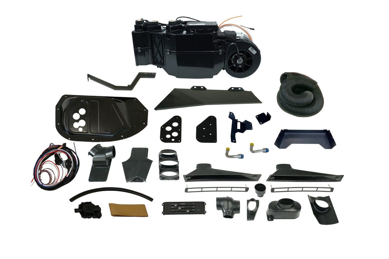 **Evaporator kit includes the evaporator unit with Magnum blower and mounting brackets louvers (where required), duct hose, wiring harness, new bolt-in replacement control panel, hardware and installation instructions.