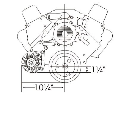 Mounts CS130 alternator with 6:00 and 10:00 mounting ears low on passenger side of LT1 engines using 2 1/8" thick Corvette balancer.