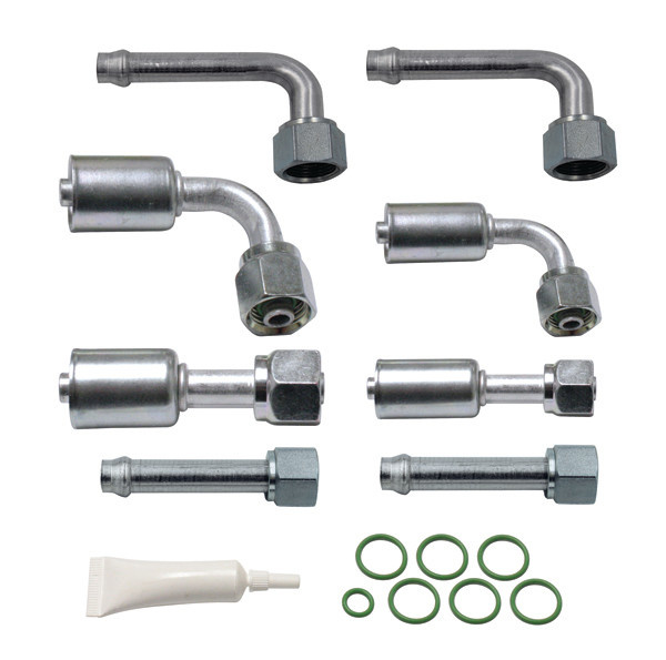Includes: 4 straight fittings 4-90 degree fittings and refrigerant oil.