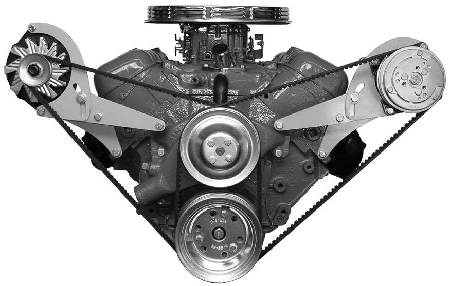 Designed for low hood-clearance applications. Bolts to heads and water pump. Brackets may be used individually or as a matched pair.