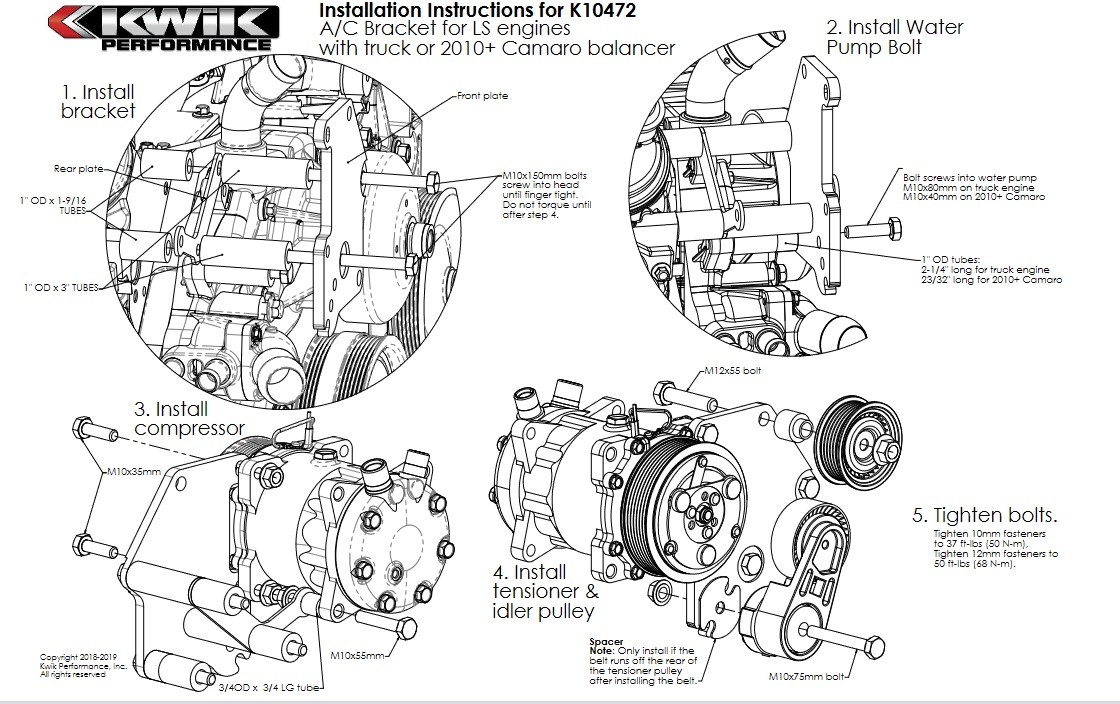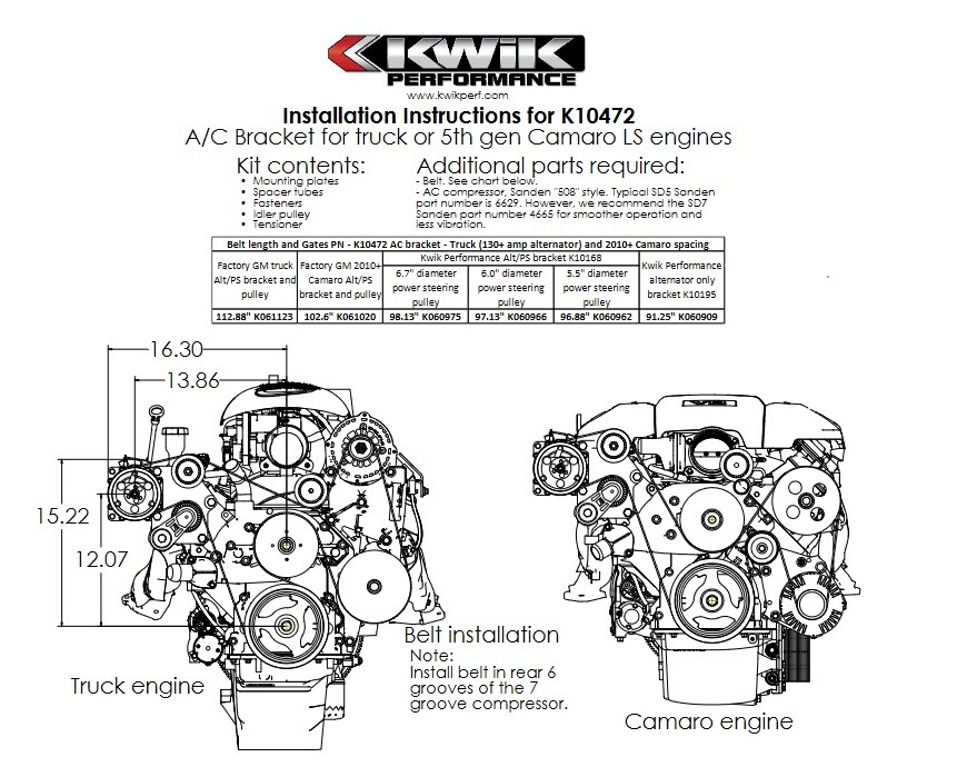 Chevy Truck LS A/C bracket kit for engines with truck or 2010-2015 Camaro accessory drive (crank pulley and water pump). NOTE: For use with 04709-VMA compressor.