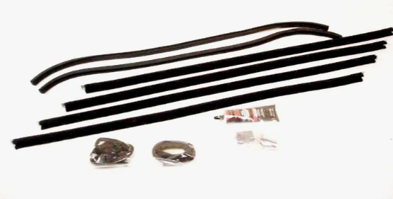 Complete for left and right hand doors. All proper clips are riveted onto the channel in the correct locations for easy installation. Includes upper window sponge seals, lower glass cushion bumpers and adhesive.