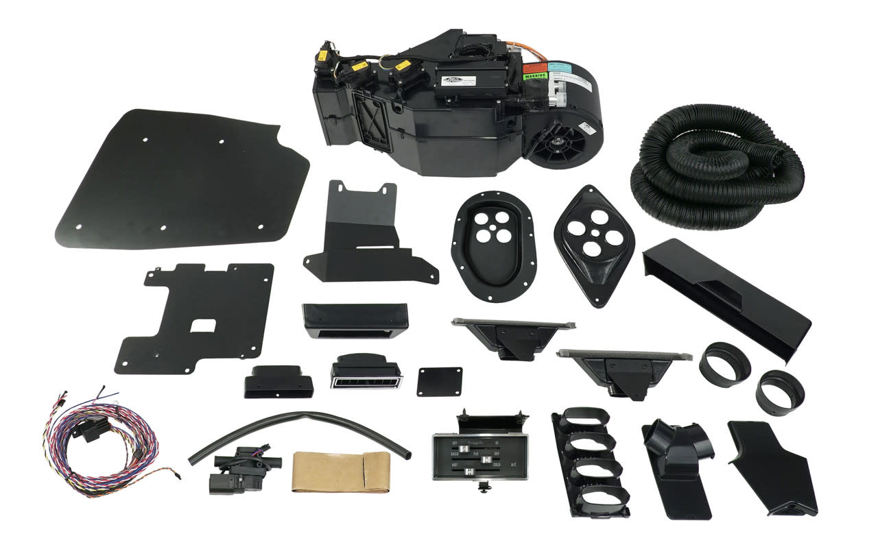 Vintage Air' 5th generation SureFit climate control systems are the most powerful and technologically advanced systems available today. They employ an exclusive, fully electronic microprocessor-controlled system that eliminates cables or vacuum connections. Separate, state-of-the-art, high-density aluminum heat exchangers pack the maximum possible performance and reliability within the confines of your dash.