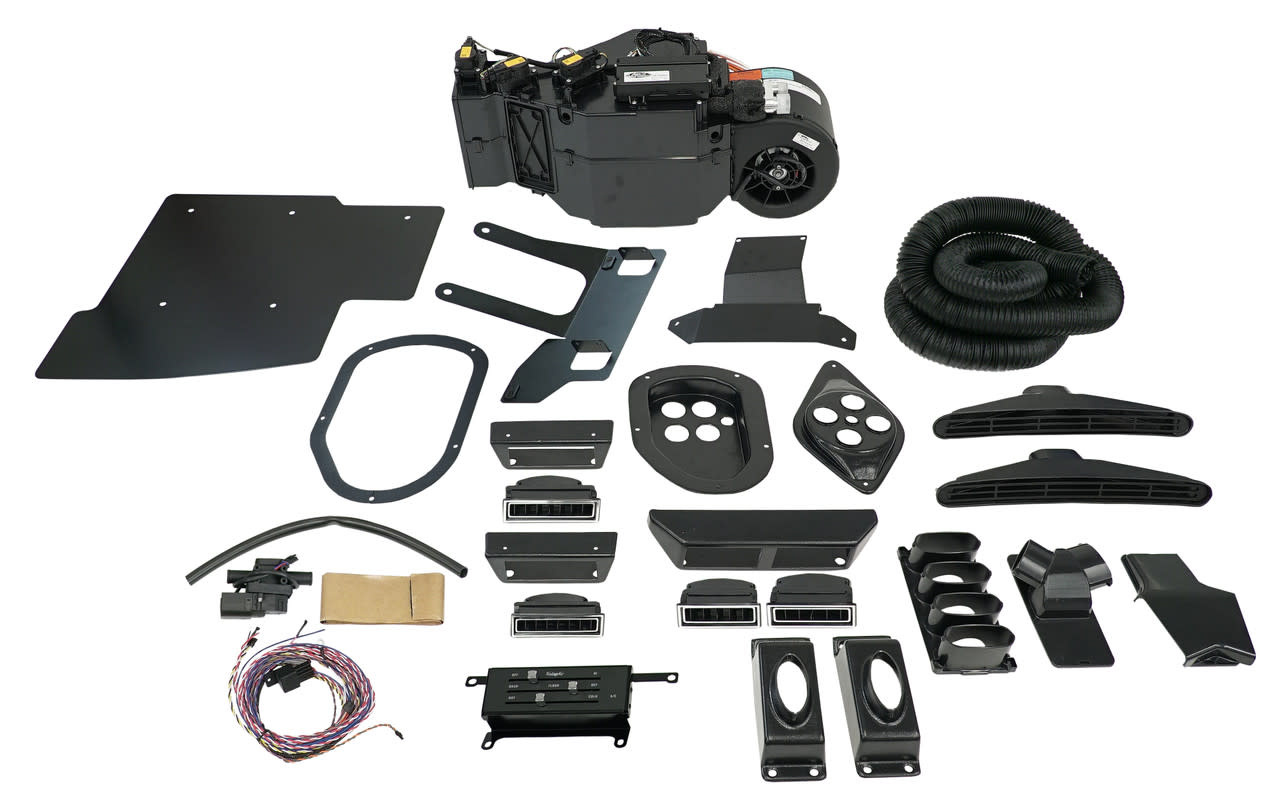 Vintage Air' 5th generation SureFit climate control systems are the most powerful and technologically advanced systems available today. They employ an exclusive, fully electronic microprocessor-controlled system that eliminates cables or vacuum connections. Separate, state-of-the-art, high-density aluminum heat exchangers pack the maximum possible performance and reliability within the confines of your dash.
