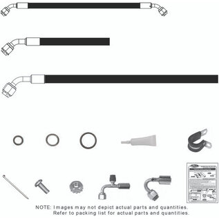 This reduced barrier modified hose kit is designed for use with a complete SureFit™ system in vehicles with or without a stock engine compartment configuration and core support. The kit contains reduced barrier refrigerant hoses with pre-crimped beadlock fittings on (1) end, with the other end open to accommodate any installation. All necessary fittings, O-rings and mounting hardware are also included, along with detailed installation and crimping instructions.