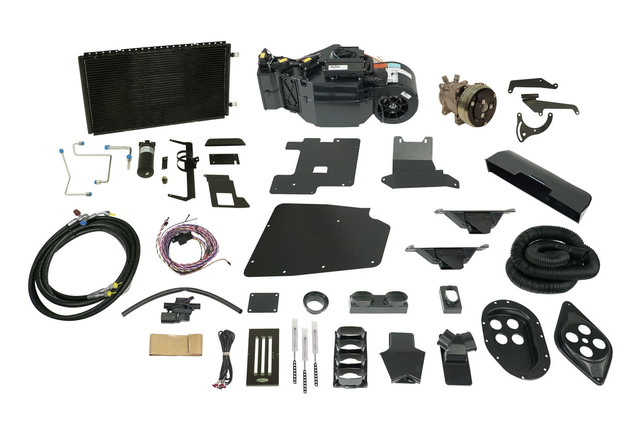 **This complete kit includes everything from the evaporator kit, plus all under-hood components such as the compressor and bracket, condenser with brackets, preformed refrigerant lines, drier, fittings, hardware, and detailed installation instructions.