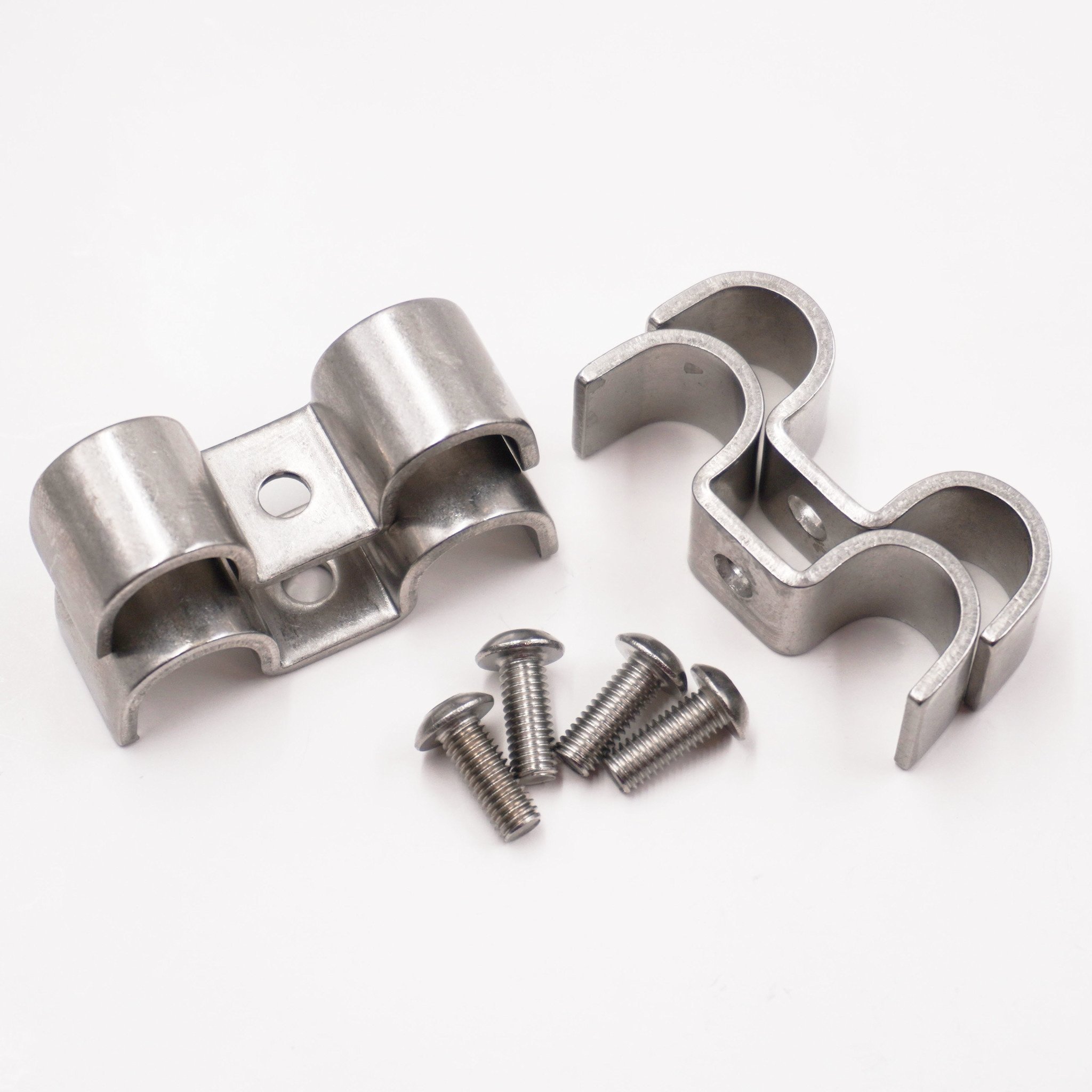 Double Stainless Steel Line Clamps: 1/2" x 1/2" Clamps with 10:32 Buttonhead Screws (4 pcs) - 8670