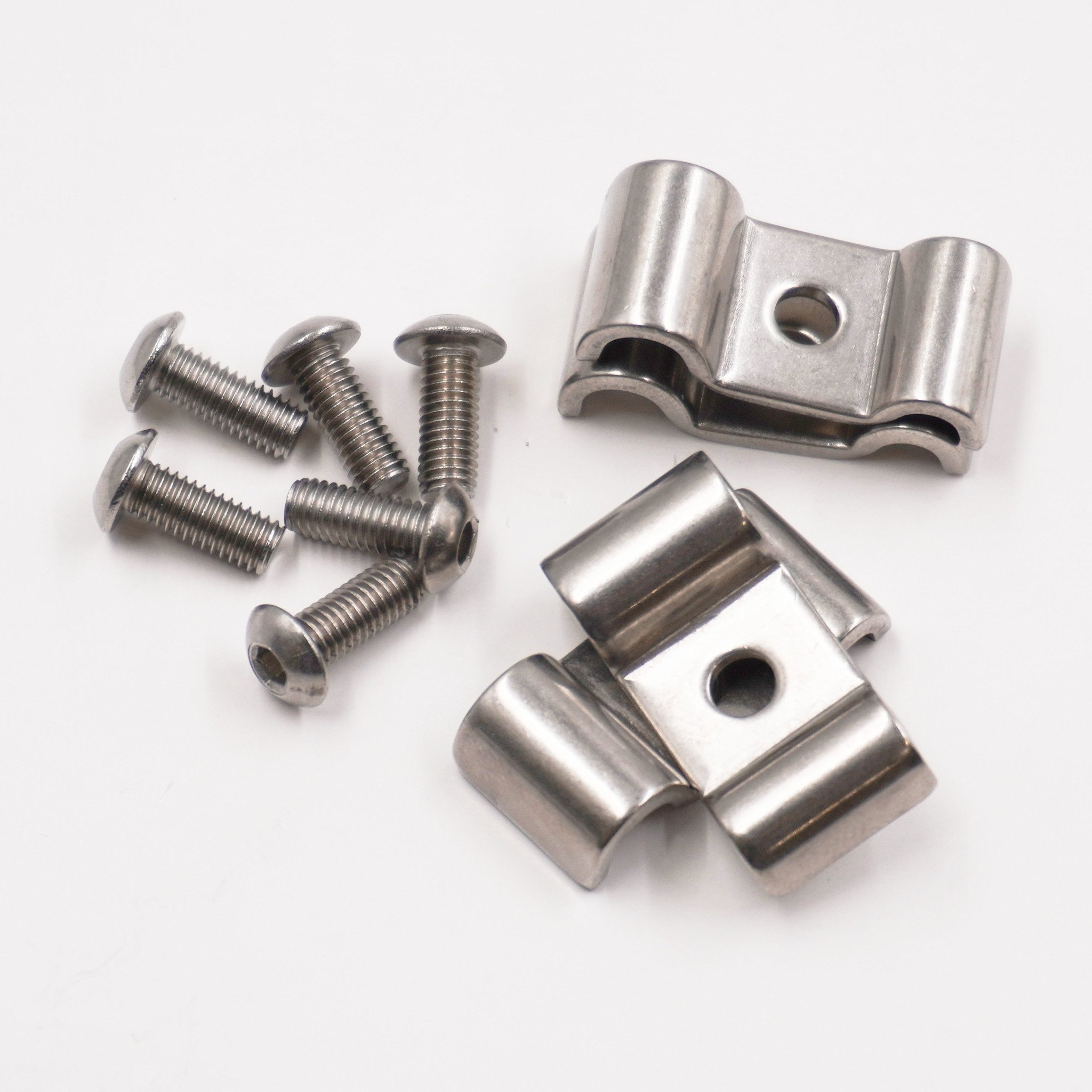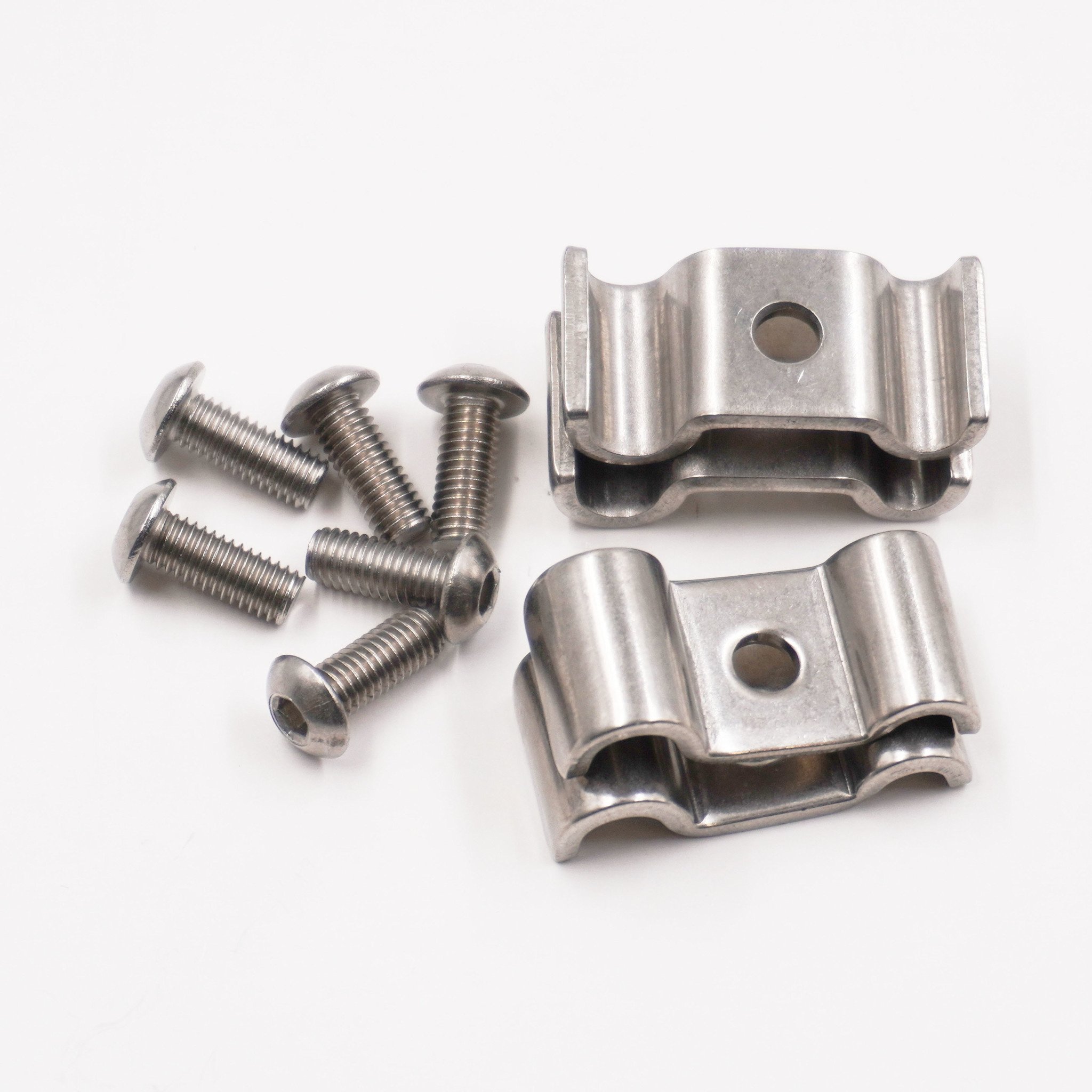 Double Stainless Steel Line Clamps: 3/16" x 1/4" Clamps with 10:32 Buttonhead Screws (4 pc) - 8615