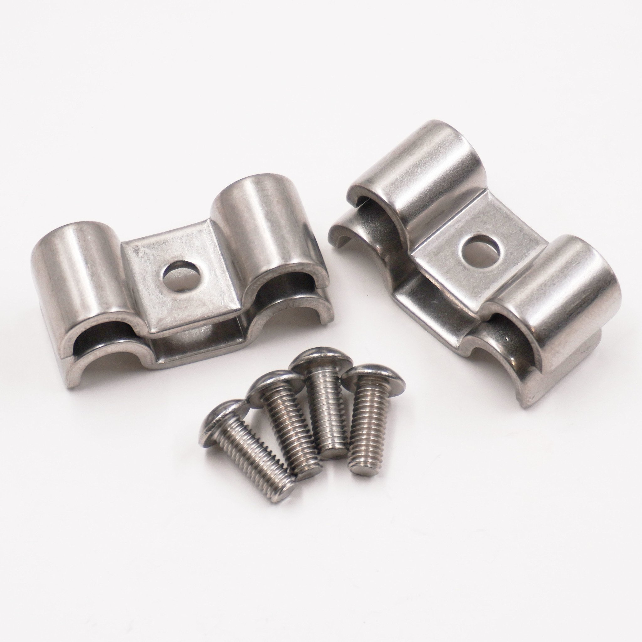 Double Stainless Steel Line Clamps: 5/16" x 5/16" Clamps with 10:32 Buttonhead Screws (4 Pcs) - 8665