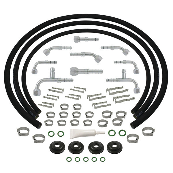 Kit includes adequate hose length to connect most complete systems 9 of the most commonly used nickel-plated steel O-ring fittings cages and clips.