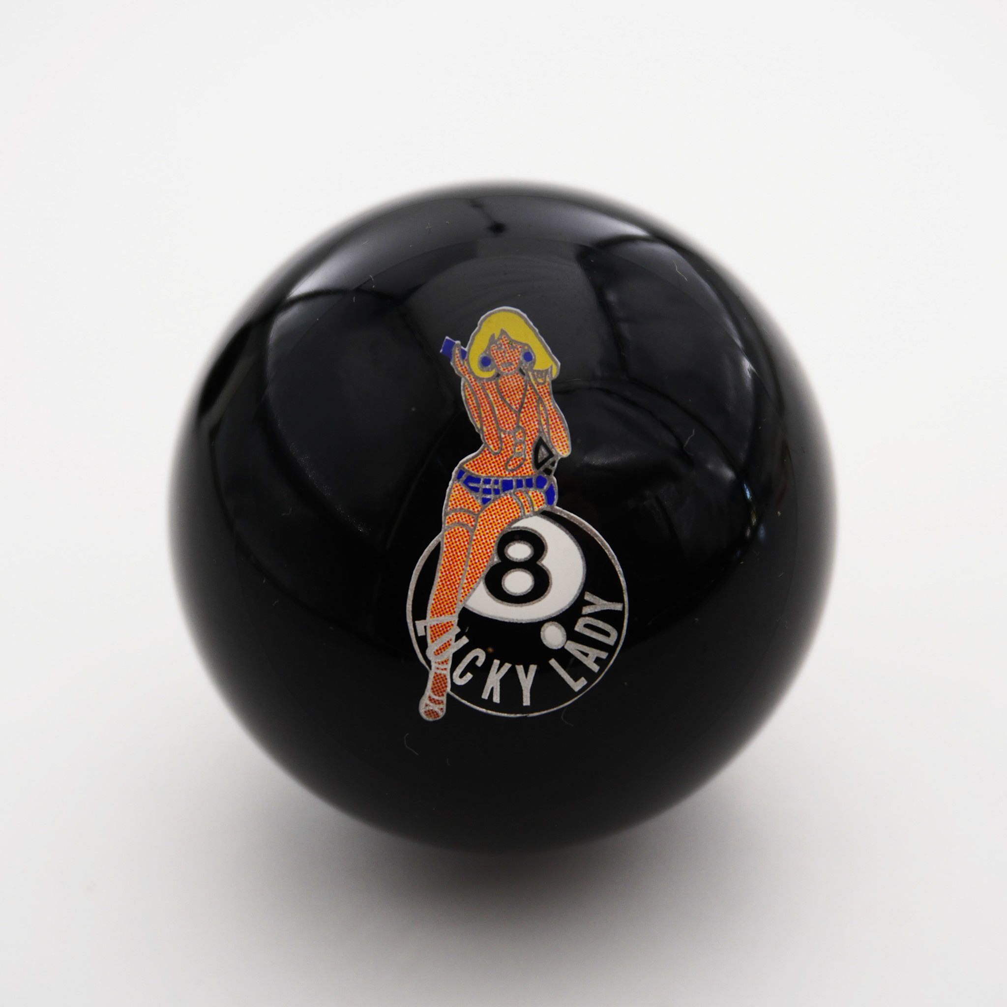 Lucky Lady 8-Ball Shift Knob - 2 1/8" diameter knob with a 16mm x 1.50 brass insert