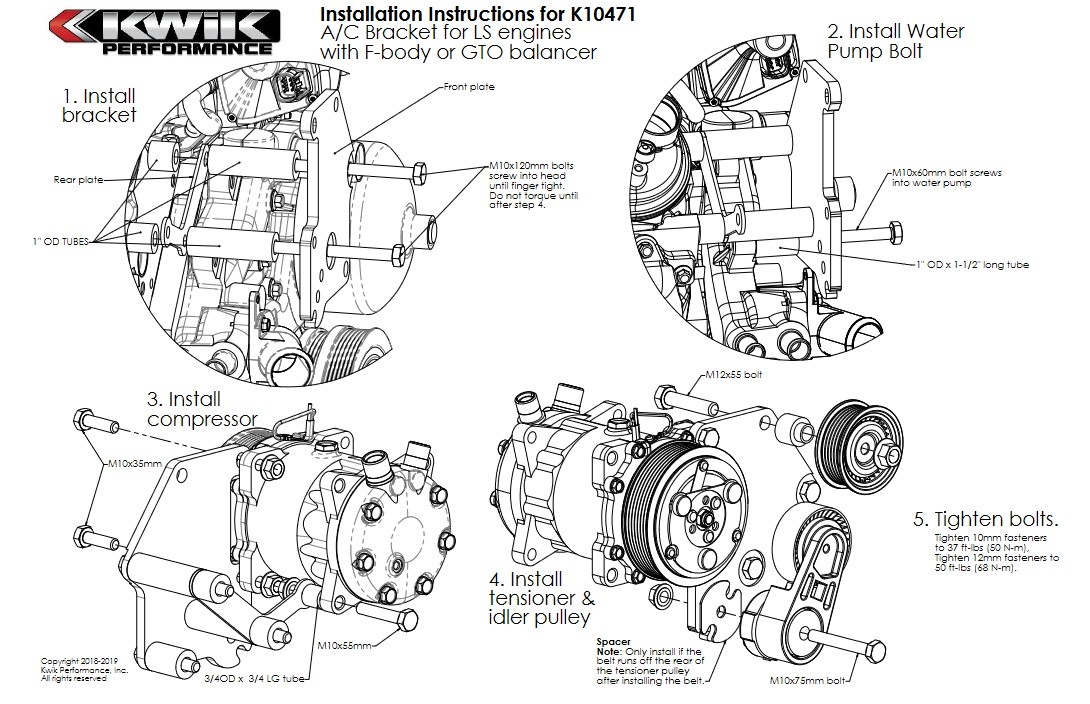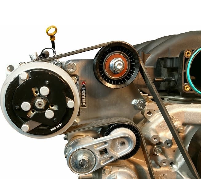 F-Body/GTO LSX A/C bracket kit for engines with F-Body/GTO accessory drive (crank pulley and water pump).
