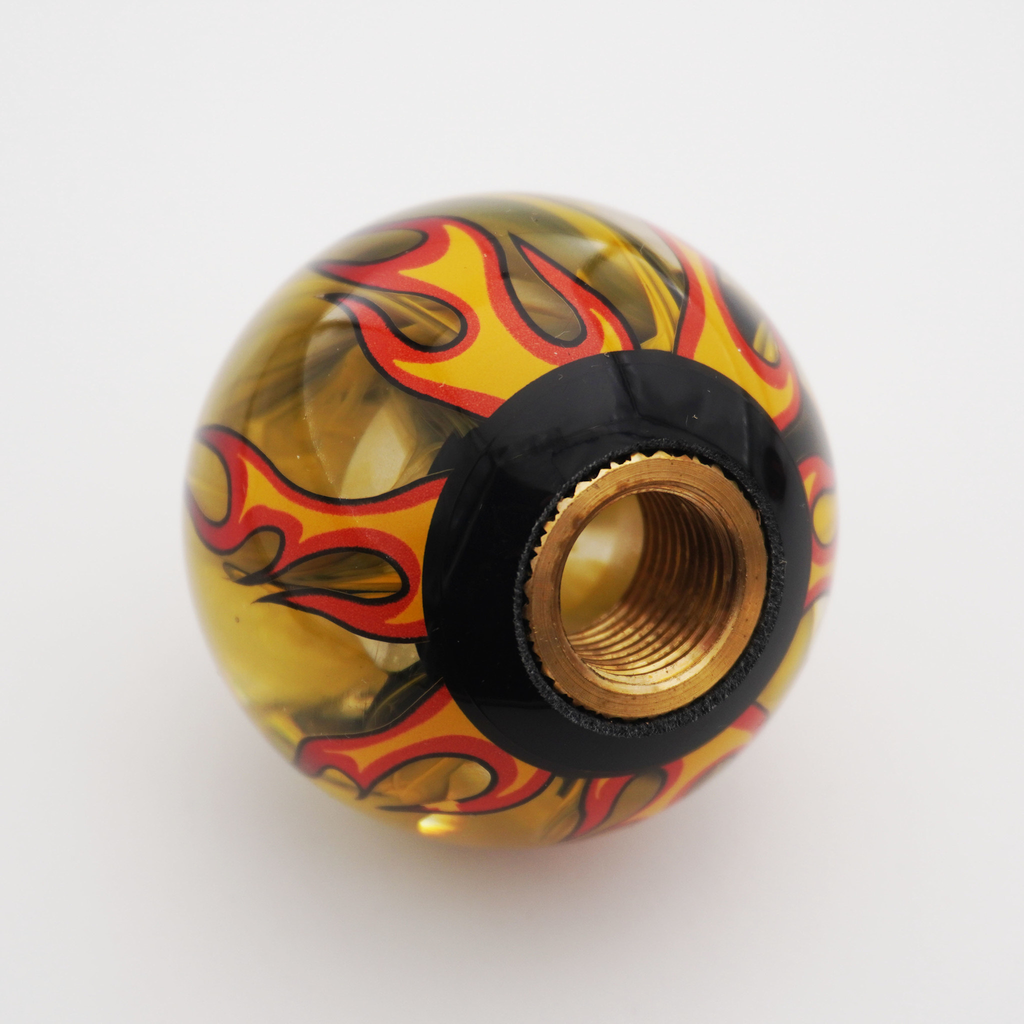 Flames on Smokey Yellow Shift Knob - 2 1/8" knob with a 16mm x 1.50 brass insert