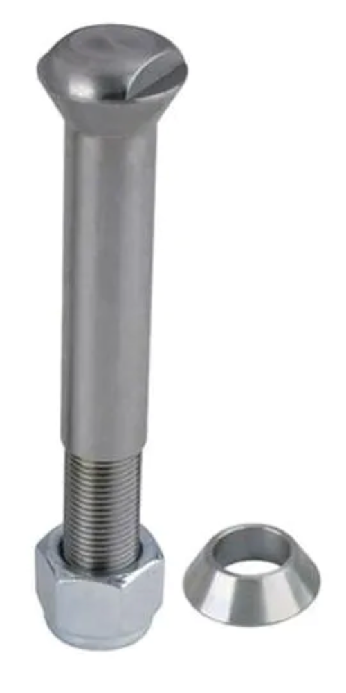 - Threaded section is 5/8" O.D. and 1-5/8" long, wrench relief in bolt head accepts a 3/4" wrench, nylock nut is 15/16" in size and cone washer included is 5/16" thick or tall