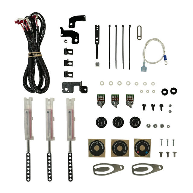 The kit includes a large variety of components, many of which are used in our SureFit Kits, to convert a wide variety of OEM rotary, three-lever or two-lever, with a three speed blower switch control panels to electronic operation to control any Gen IV or Gen 5 system.