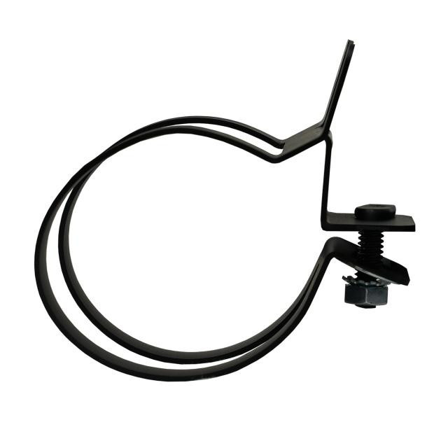 Heavy Duty double strap mounting bracket with 90° mounting point. Includes welded stud, washer, and nut.