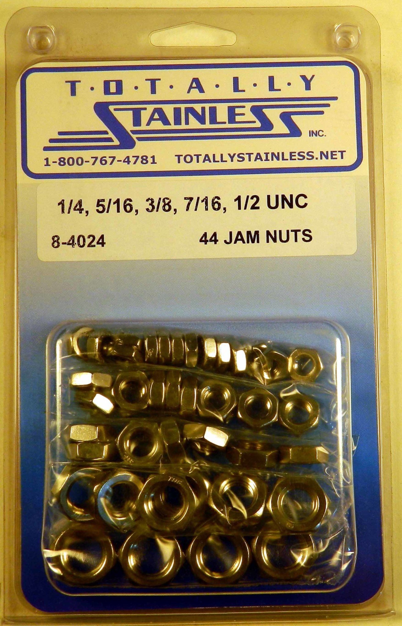 Genuine Totally Stainless 1/4-20, 5/16-18, 3/8-16, 7/16-14 & 1/2-13 Stainless Jam Nuts - 8-4024 - 18-8 Stainless Steel - 44 Nuts