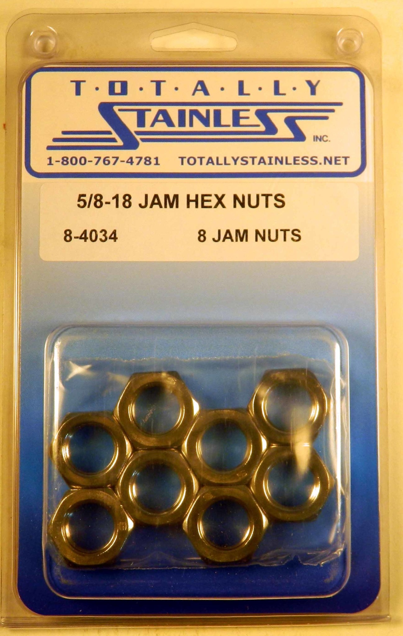 Genuine Totally Stainless 5/8-18 Stainless Jam Nuts - 8-4034 - 18-8 Stainless Steel - 8 Nuts