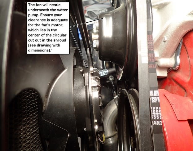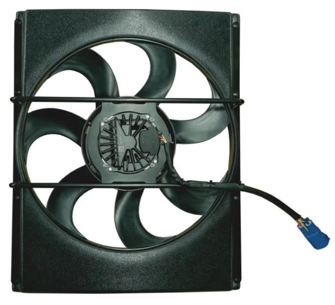 Brushless Electric fan with shroud. Powder coated tubular fan mounting bracket (see diagrams for clearance requirements). Mount vertically or horizontally.