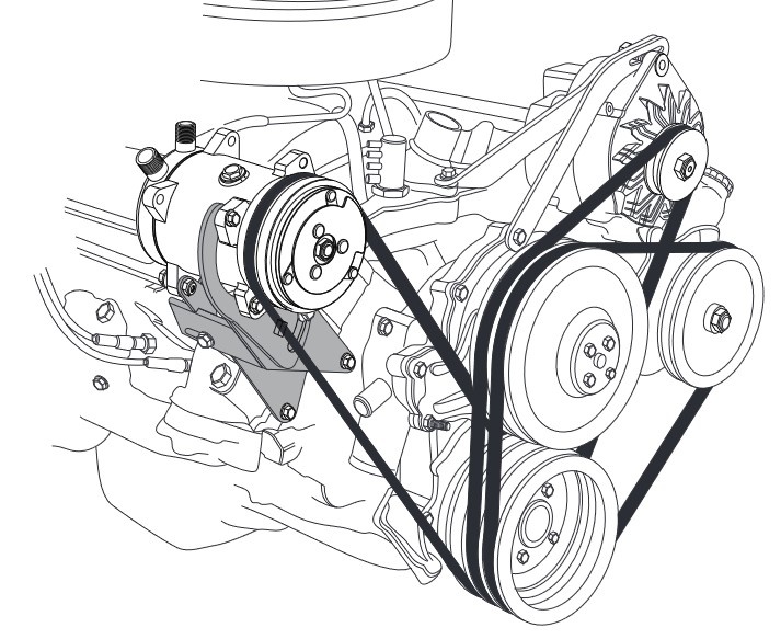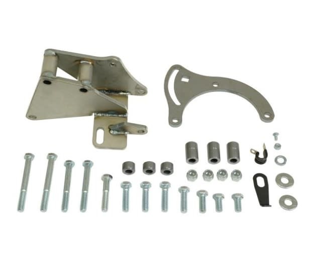 Simple and economical solutions to get your classic engine powered car air conditioned with ease. Steel plate brackets to mount compressor alternator and power steering on some apps. 1966-67 factory smog equipment may interfere with bracket.