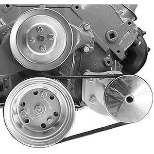 This bracket is designed to be used with the metric G.M. remote reservoir type 2 pump. Designed for low profile bracket applications, it provides clearance for alternator belt no matter where the alternator is mounted. Pump is driven off the outer groove of a 3 groove crank pulley. Big block short water pump only.