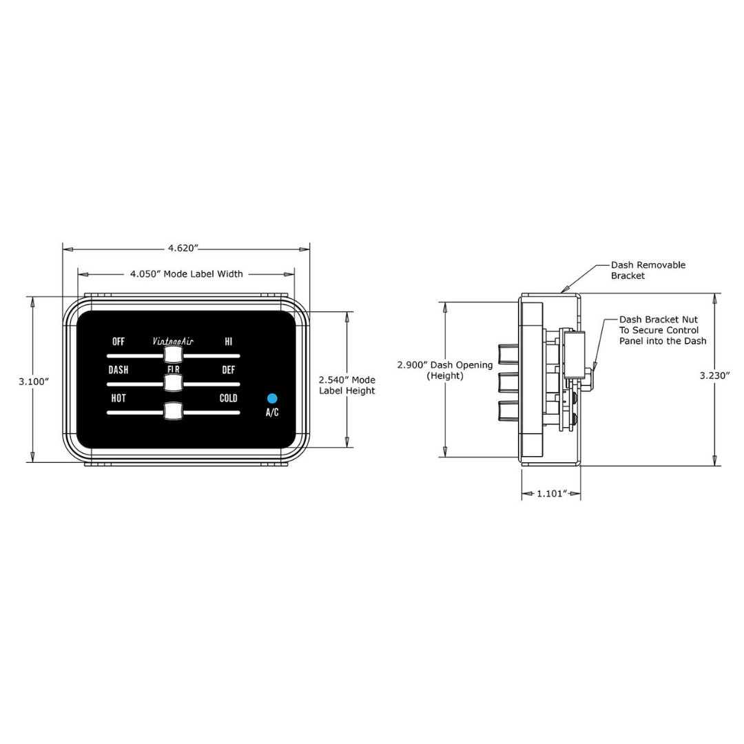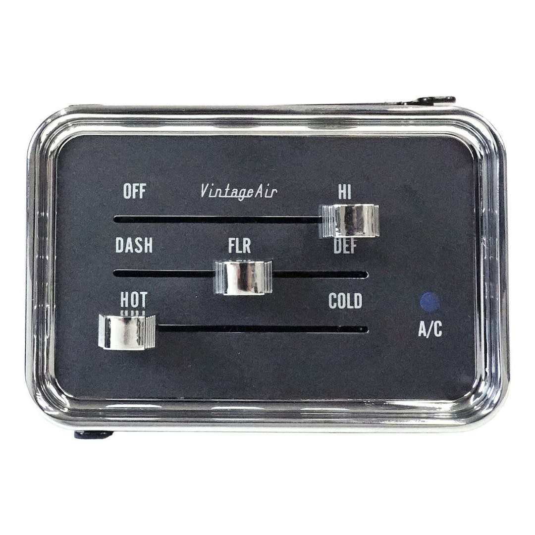 This chrome-plated, machined aluminum control panel features a recessed face design with exclusive soft-white LED backlighting and a blue “A/C On” indicator. Slide potentiometers provide smooth control of blower speed, air blend, and temperature.