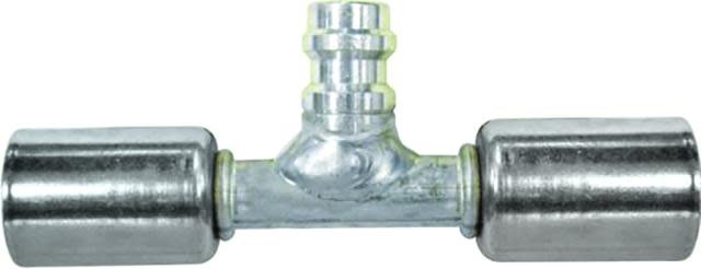 Beadlock O-Ring Fitting with 134a Service Port reduced barrier hose fitting - In-Line with Service Port. Fitting for reduced barrier Vintage Air hose.