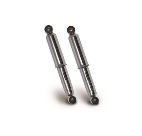 FEATURES:Self returning, Gas filled tube shocks. The smooth bell shock line offers a bell shaped dust cover to prevent dust and particles interfering with your seal and keeps a traditional look. Neoprene bushings are used for longevity and extra shock absorption to further reduce the bumpy ride. By far the most popular choice for traditional hot rods. The "shorty" shock is a great fit for extra low hot rods or for builders using short or custom shock mounts. WHAT'S INCLUDED: