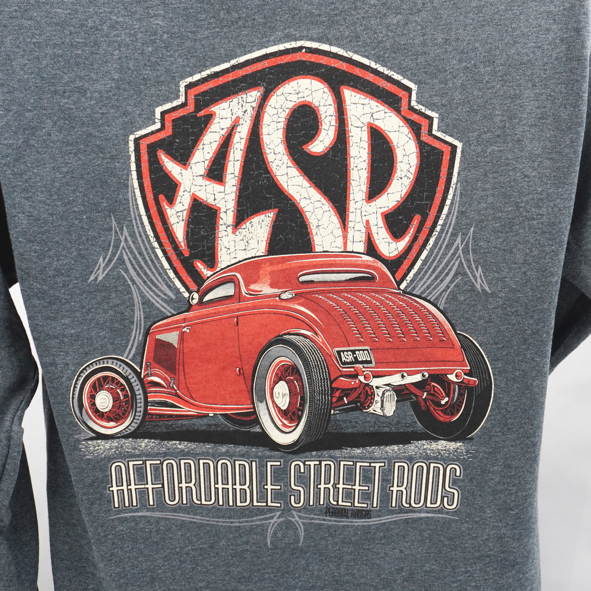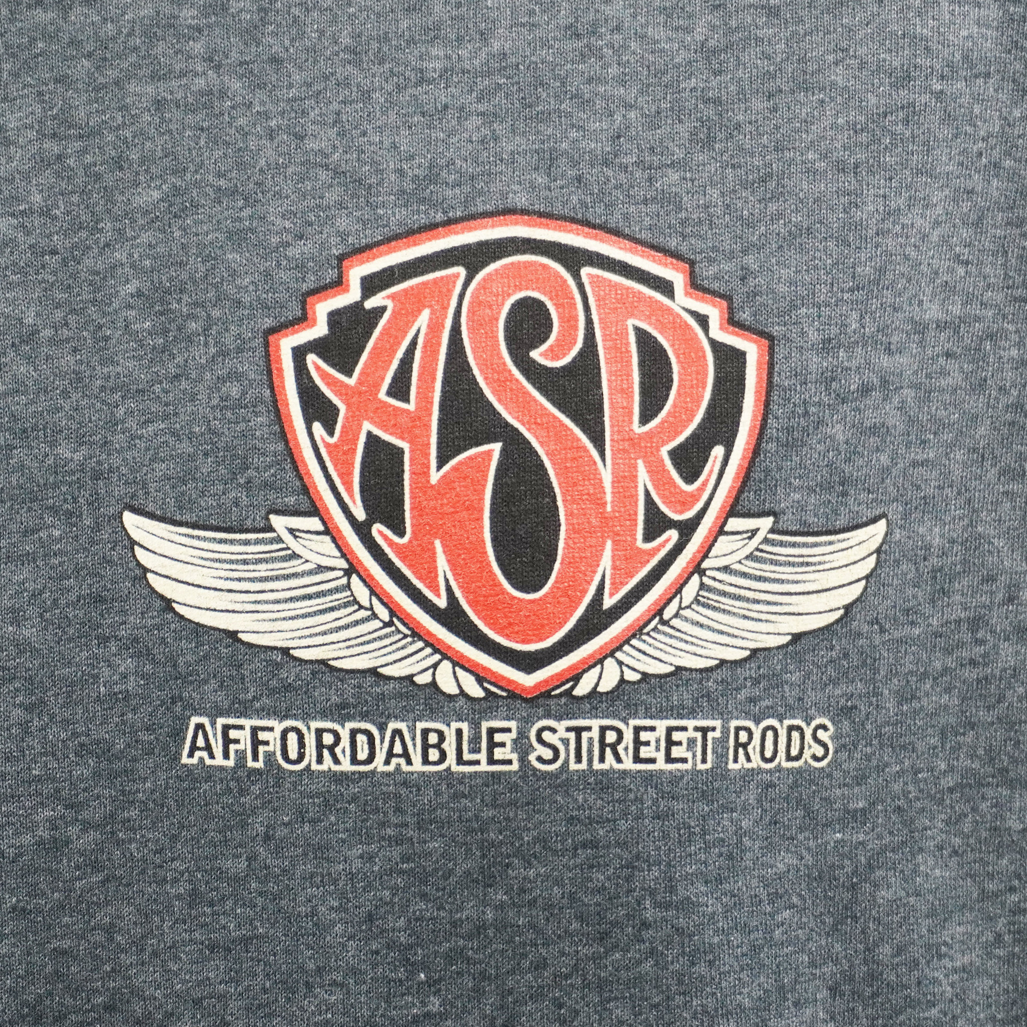 The new ASR '34 Ford logo on the back and ASR wings logo on the front, the shirt is in a sport grey color and available as a short or long sleeve in men's sizes and also available in children's and ladies sizes as well.