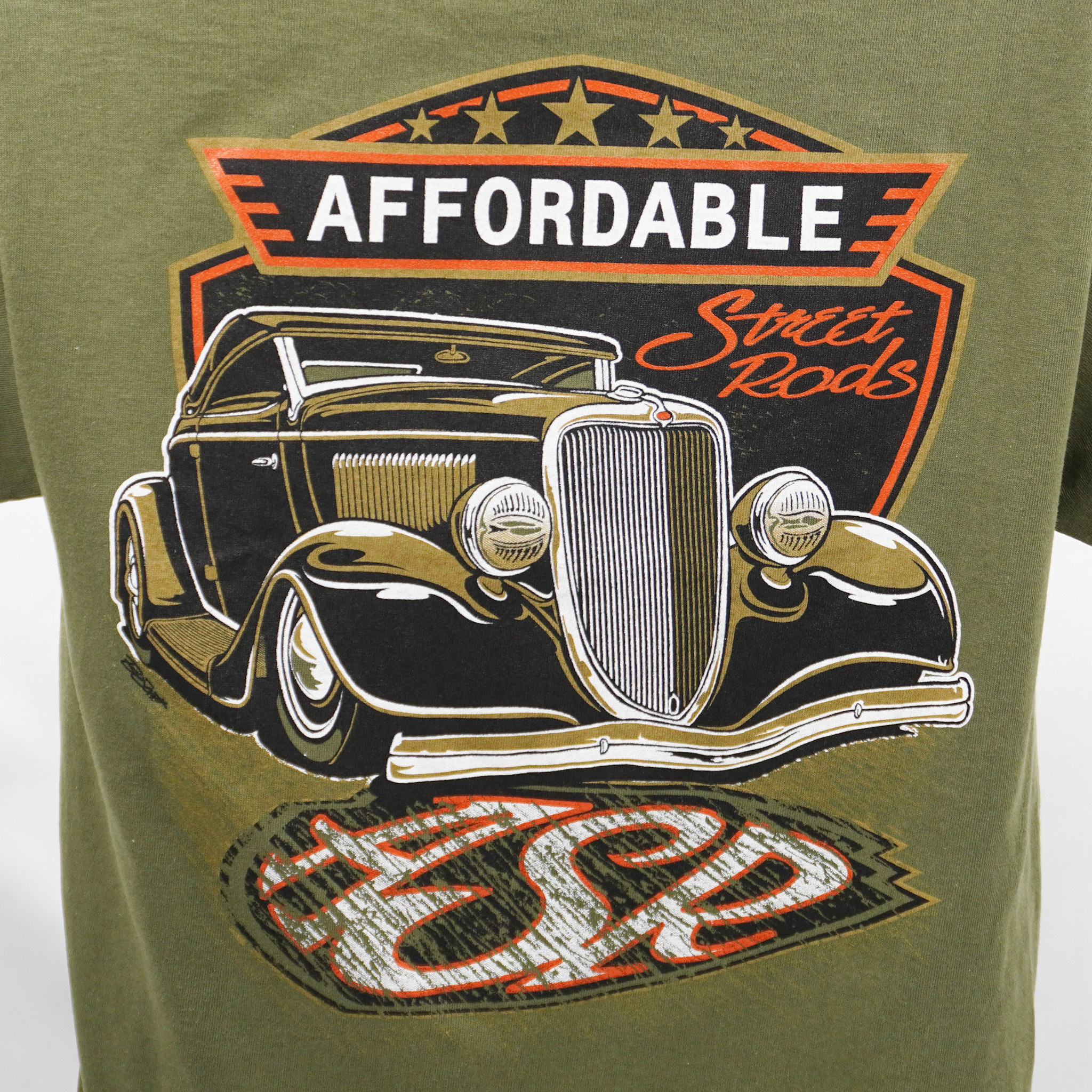 Affordable Street Rods Graphic Tee featuring a '34 Ford Roadster – Military Green